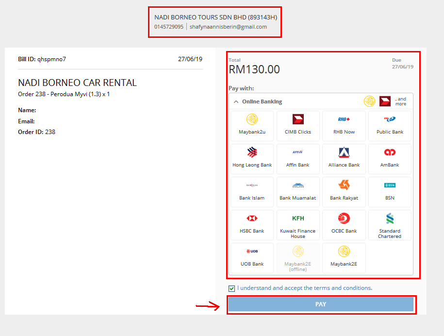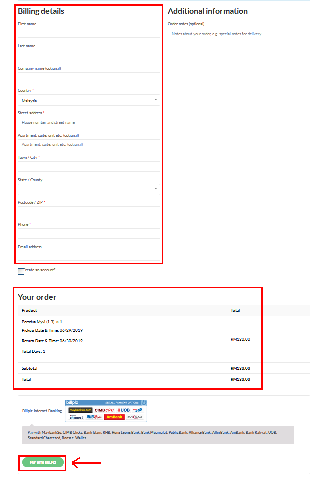 3. Please complete the booking form and click the Pay With Billplz button
